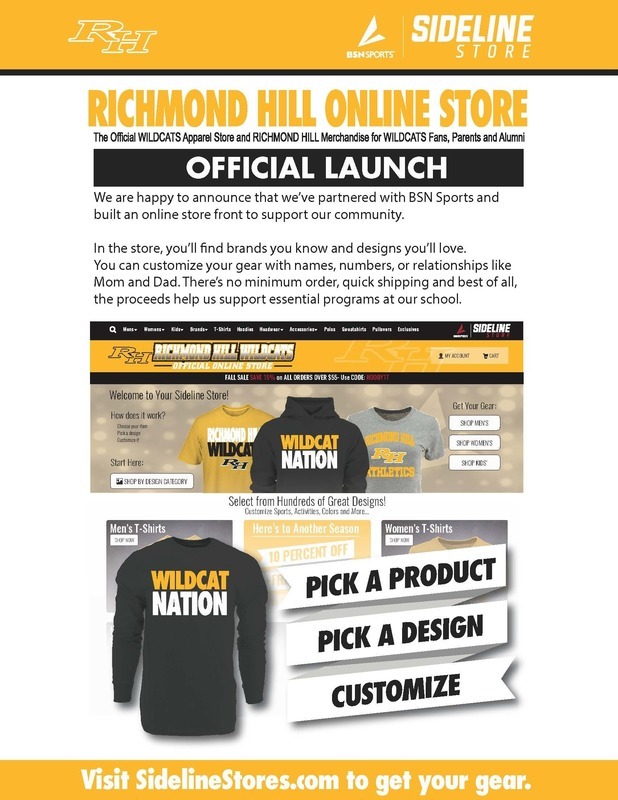 Richmond Hill High School is excited to announce the launch of an online store. The school store offers a full service apparel website that allows the customer to customize any of the items to fit your needs. All of the Athletics, Clubs and Organizations are represented on the website as well. We are excited to see the Richmond Hill community outfitted in RH gear!